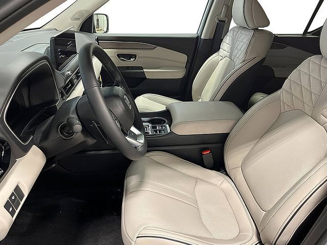 The 2026 Honda Pilot Elite AWD represents the pinnacle of the Pilot lineup, powered by a refined 3.5-liter V6 engine that delivers 285 horsepower and 262 lb-ft of torque through a 10-speed automatic transmission and the i-VTM4 AWD system. As a luxury-focused trim, the Elite builds upon the core features with a premium cabin featuring perforated leather-trimmed seats with quilted accents, heated and ventilated front seats, and heated second-row outboard seats. Technology takes center stage with a standard 12.3-inch touchscreen featuring Google built-in, a 10.2-inch digital instrument cluster, a Head-Up Display (HUD), and an immersive 12-speaker Bose premium audio system. The exterior is distinguished by 20-inch Shark Gray alloy wheels and a hands-free access power tailgate, while the ride quality is enhanced by specialized sound-deadening materials that ensure a quiet and composed cabin for up to eight passengers.
