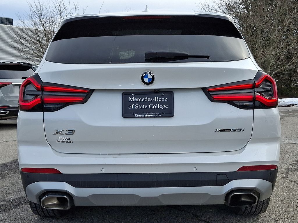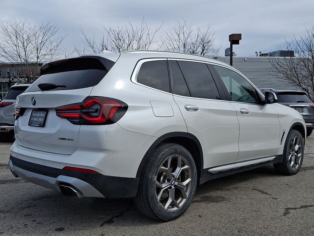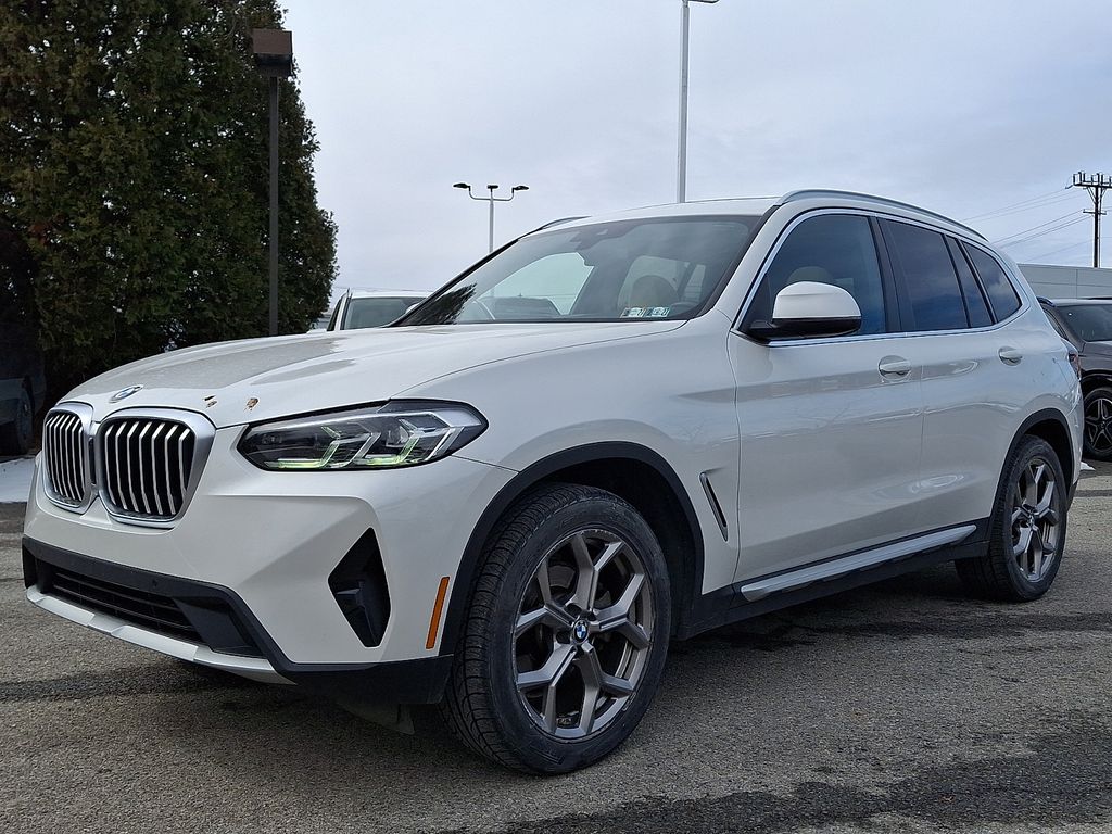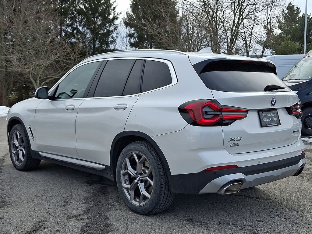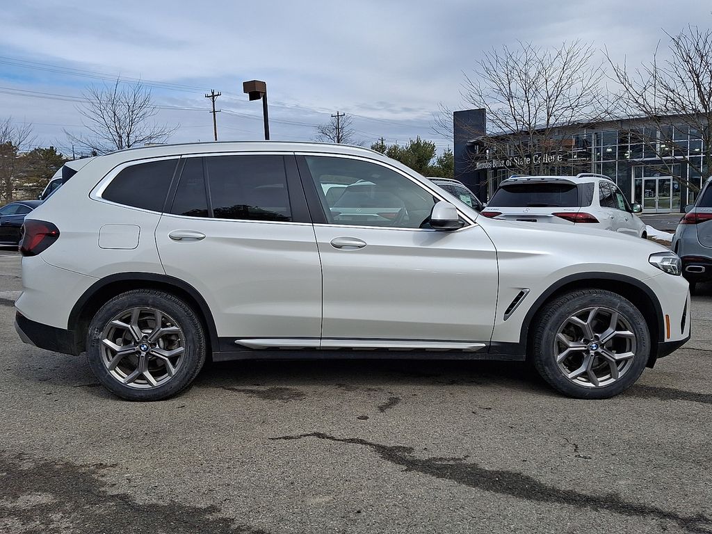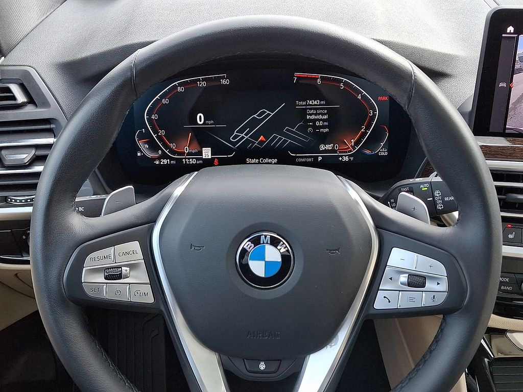 CARFAX One-Owner. Clean CARFAX. 2022 BMW X3 xDrive30i 8-Speed Automatic Sport, 12 Speakers, Air Conditioning, AM/FM Radio, AM/FM radio: SiriusXM with 360L, Apple CarPlay & Android Auto Compatibility, Auto High-beam Headlights, Auto-dimming door mirrors, Automatic temperature control, BMW Assist eCall, BMW TeleServices, Brake assist, Bumpers: body-color, Connected Package Pro, ConnectedDrive Services, Convenience Package, Delay-off headlights, Electronic Stability Control, Enhanced Bluetooth, Exterior Parking Camera Rear, Front dual zone A/C, Fully automatic headlights, Heated door mirrors, Hi-Fi Sound System, Lumbar Support, Navigation, Panic alarm, Panoramic Moonroof, Passenger door bin, Power door mirrors, Power Liftgate, Radio data system, Rain sensing wipers, Rear air conditioning, Rear window defroster, Rear window wiper, Security system, SiriusXM w/360L, Speed control, Speed-Sensitive Wipers, Variably intermittent wipers, Wheels: 19" x 7.5" Y-Spoke (Style 693), WiFi Hotspot, 3.385 Axle Ratio, 4-Wheel Disc Brakes, ABS brakes, Alloy wheels, Auto-dimming Rear-View mirror, Comfort Access Keyless Entry, Driver door bin, Driver vanity mirror, Dual front impact airbags, Dual front side impact airbags, Emergency communication system: BMW Assist eCall, Four wheel independent suspension, Front anti-roll bar, Front Bucket Seats, Front Center Armrest, Front reading lights, Garage door transmitter, Genuine wood dashboard insert, Genuine wood door panel insert, Heated Front Seats, Heated Steering Wheel, Illuminated entry, Knee airbag, Live Cockpit Pro w/Navigation, Low tire pressure warning, M Shadowline Lights, Memory seat, Navigation System, Occupant sensing airbag, Outside temperature display, Overhead airbag, Passenger vanity mirror, Perforated SensaTec Upholstery, Power driver seat, Power Front Seats, Power passenger seat, Power steering, Power windows, Rear anti-roll bar, Rear reading lights, Rear seat center armrest, Remote keyless entry, Roof rack: rails only, Speed-sensing steering, Split folding rear seat, Spoiler, Sport Seats, Sport steering wheel, Steering wheel mounted audio controls, Tachometer, Telescoping steering wheel, Tilt steering wheel, Traction control, Trip computer, Turn signal indicator mirrors, 8-Speed Automatic Sport, 12 Speakers, Air Conditioning, AM/FM Radio, AM/FM radio: SiriusXM with 360L, Apple CarPlay & Android Auto Compatibility, Auto High-beam Headlights, Auto-dimming door mirrors, Automatic temperature control, BMW Assist eCall, BMW TeleServices, Brake assist, Bumpers: body-color, Connected Package Pro, ConnectedDrive Services, Convenience Package, Delay-off headlights, Electronic Stability Control, Enhanced Bluetooth, Exterior Parking Camera Rear, Front dual zone A/C, Fully automatic headlights, Heated door mirrors, Hi-Fi Sound System, Lumbar Support, Navigation, Panic alarm, Panoramic Moonroof, Passenger door bin, Power door mirrors, Power Liftgate, Radio data system, Rain sensing wipers, Rear air conditioning, Rear window defroster, Rear window wiper, Security system, SiriusXM w/360L, Speed control, Speed-Sensitive Wipers, Variably intermittent wipers, Wheels: 19" x 7.5" Y-Spoke (Style 693), WiFi Hotspot.