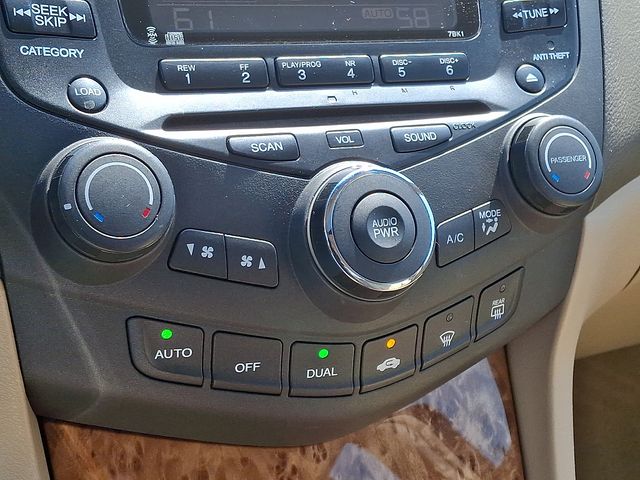 The Accord EX-L's comprehensive list of amenities includes dual-zone automatic climate control, a premium 120-watt AM/FM/6-disc CD audio system, a power driver's seat, a leather-wrapped steering wheel, and a power moonroof â" all of which contribute to a refined and comfortable driving environment. The vehicle's advanced safety features, including ABS brakes, dual front and side impact airbags, and a security system, provide added peace of mind.