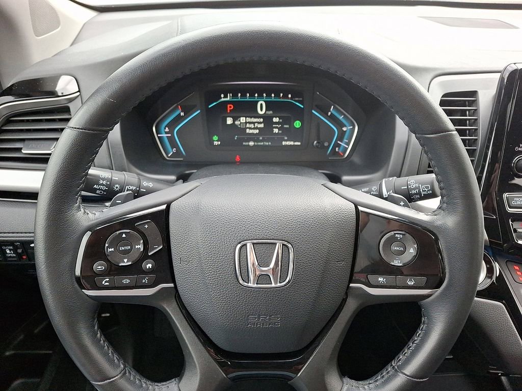Demonstrating that economical transportation does not require the sacrifice of comfort or safety! This 8 passenger van still has less than 15,000 miles! All of the premium features expected of a Honda are offered, including: a power seat, lane departure warning, and leather upholstery. Smooth gearshifts are achieved thanks to the 3.5 liter 6 cylinder engine, and for added security, dynamic Stability Control supplements the drivetrain.