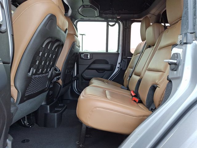 Adorned in a sleek Silver exterior, this Wrangler Unlimited Rubicon exudes a bold and confident presence. The premium Black Sunrider soft top and 17" black wheels with machined lips add a touch of rugged style, while the body-color fender flares and steel bumpers reinforce its off-road capabilities.