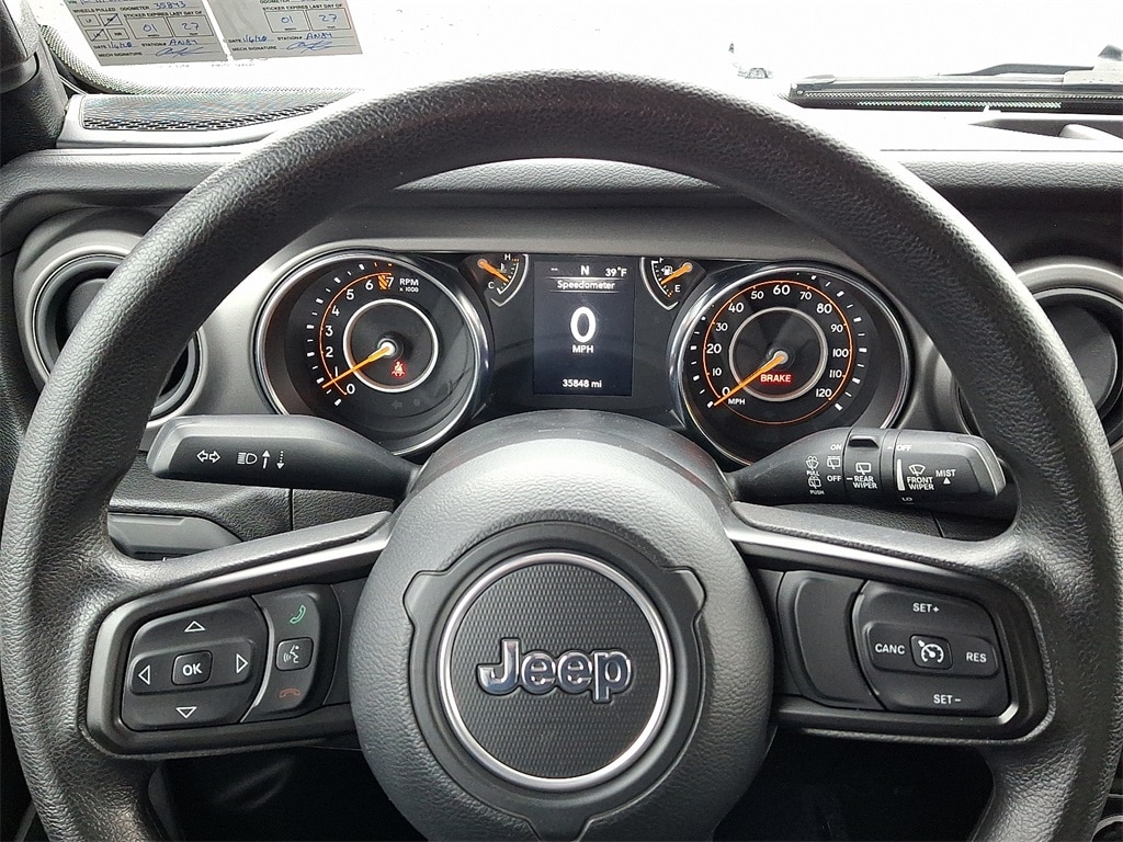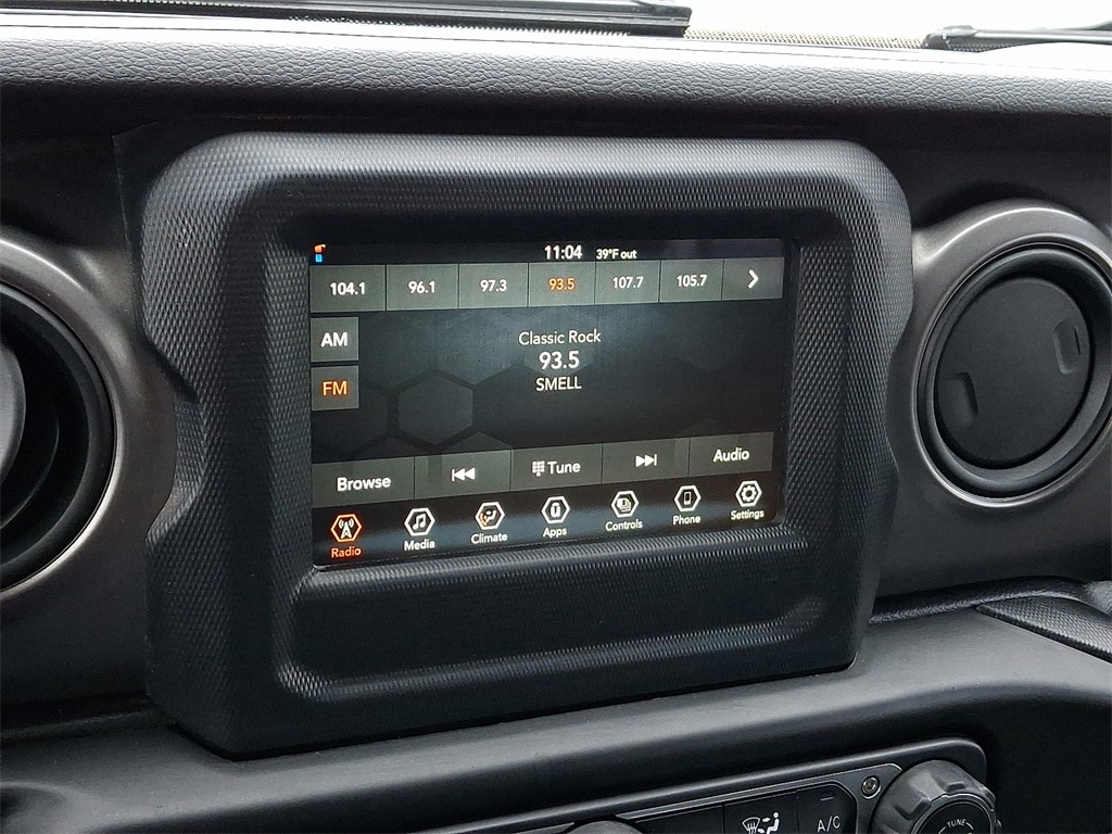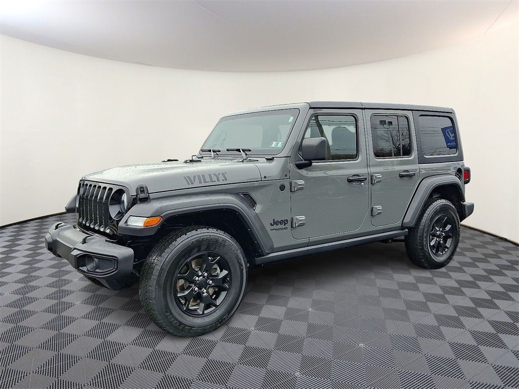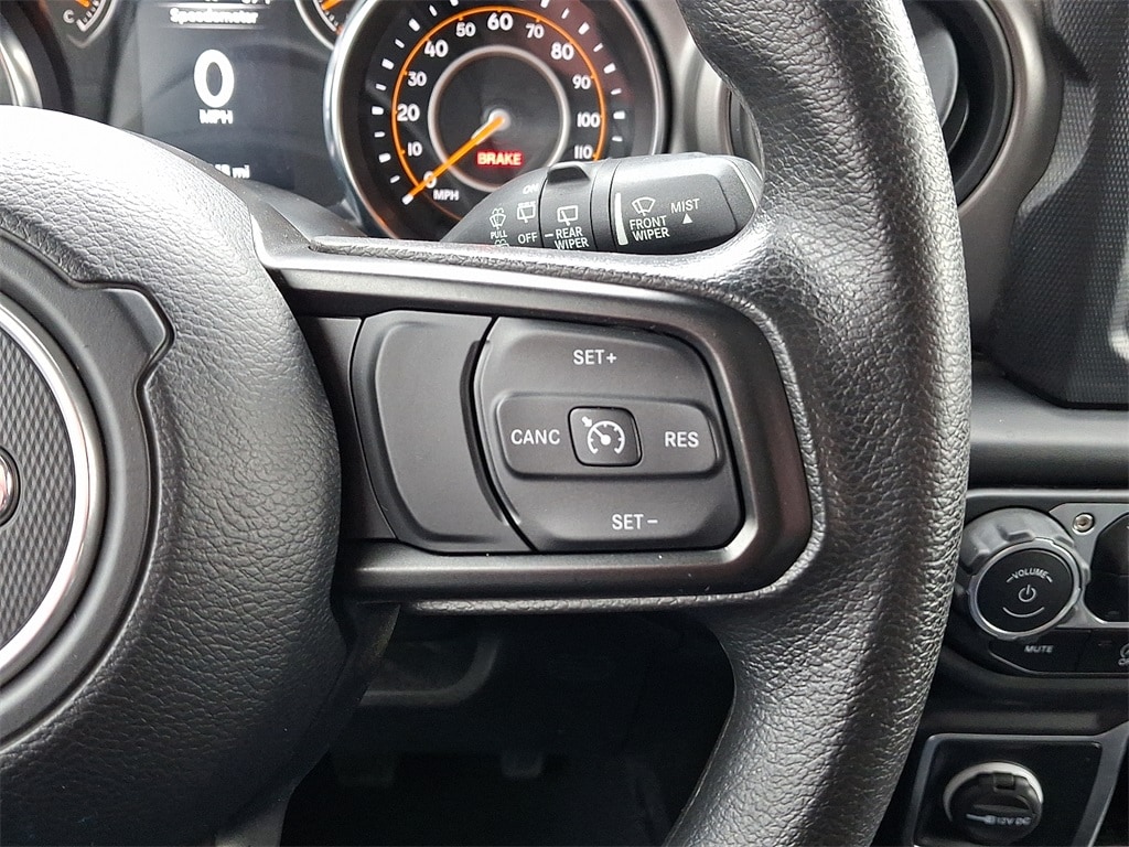 240 Amp Alternator, 4-Wheel Drive Swing Gate Decal, 7 & 4 Pin Wiring Harness, 700 Amp Maintenance Free Battery, 97 MPH Vehicle Max Speed Calibration, Air Conditioning, Anti-Spin Differential Rear Axle, Auxiliary Switches, BF Goodrich Brand Tires, Black Grille, Black Trail Rated Badge, Class II Receiver Hitch, Cloth Low-Back Bucket Seats, Deep Tint Sunscreen Windows, Front Bucket Seats, Matte Black Jeep Badge, Mold In Color Bumper w/Gloss Black, MOPAR All-Weather Floor Mats, Quick Order Package 23K Willys Sport, Radio: Uconnect 4 w/7" Display, Split folding rear seat, Steering wheel mounted audio controls, Traction control, Trailer Tow & HD Electrical Group, Wheels: 17" x 7.5" Moab Black Aluminum, Willys, Willys Hood Decal.