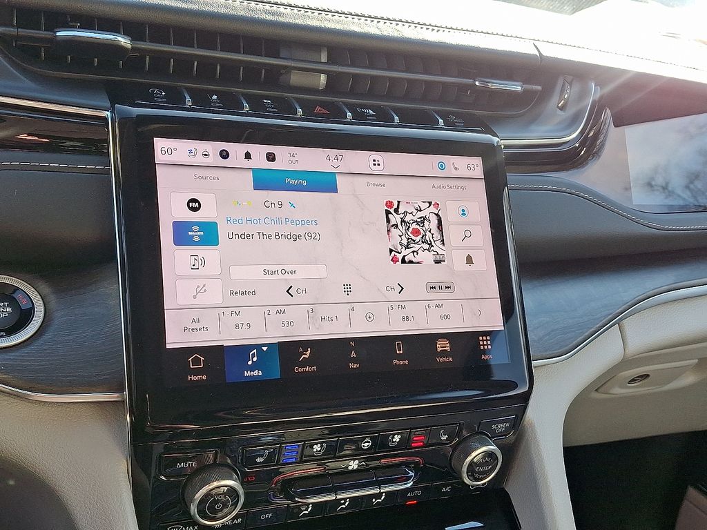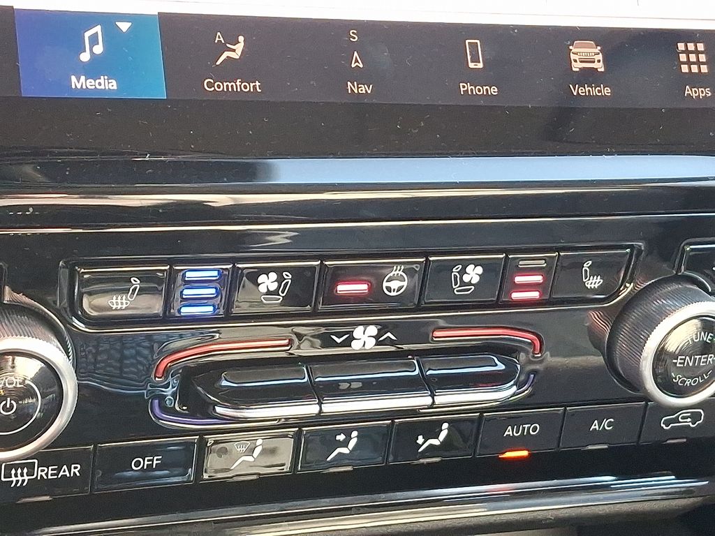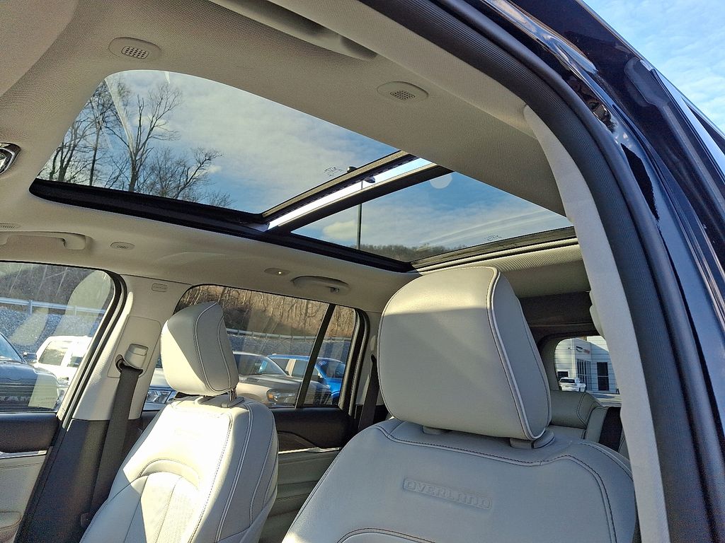 The Overland's elegant Diamond Black Crystal Pearlcoat exterior and Black interior exude a refined and sophisticated presence. Indulge in the comfort and convenience of Nappa Leather Seats, Heated Front and Rear Seats, and Ventilated Front Seats, ensuring a truly luxurious driving experience.