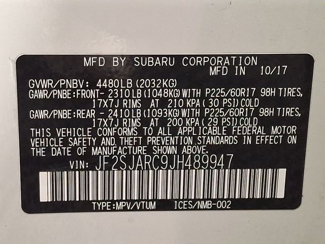 2018 Subaru Forester 2.5i Limited Blind Spot Warning / Alert, Bluetooth, Forward Collision Warning, Leather, Non-Smoker, Sunroof / Moonroof, Rear Back-up Camera, Forester 2.5i Limited, Crystal White Pearl.